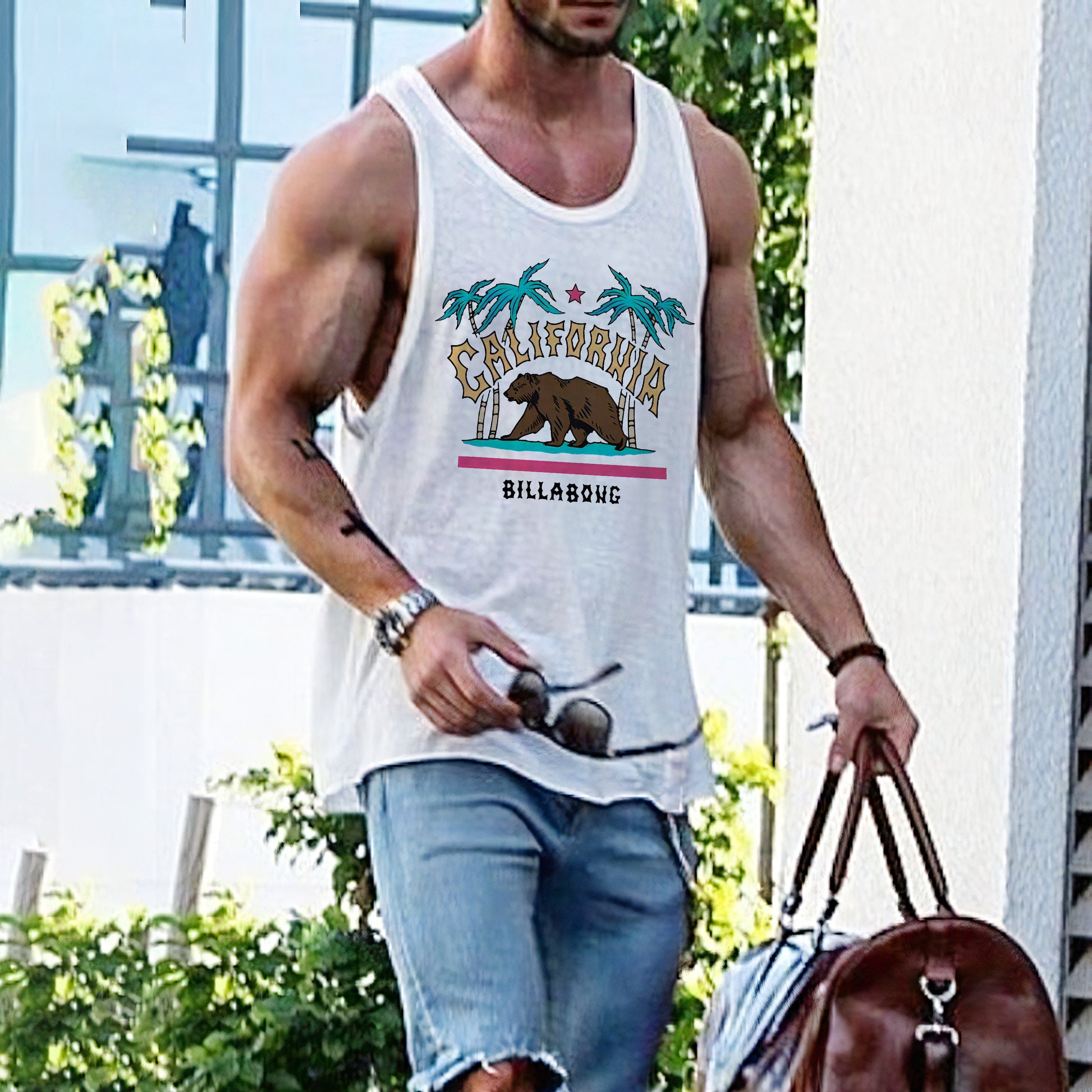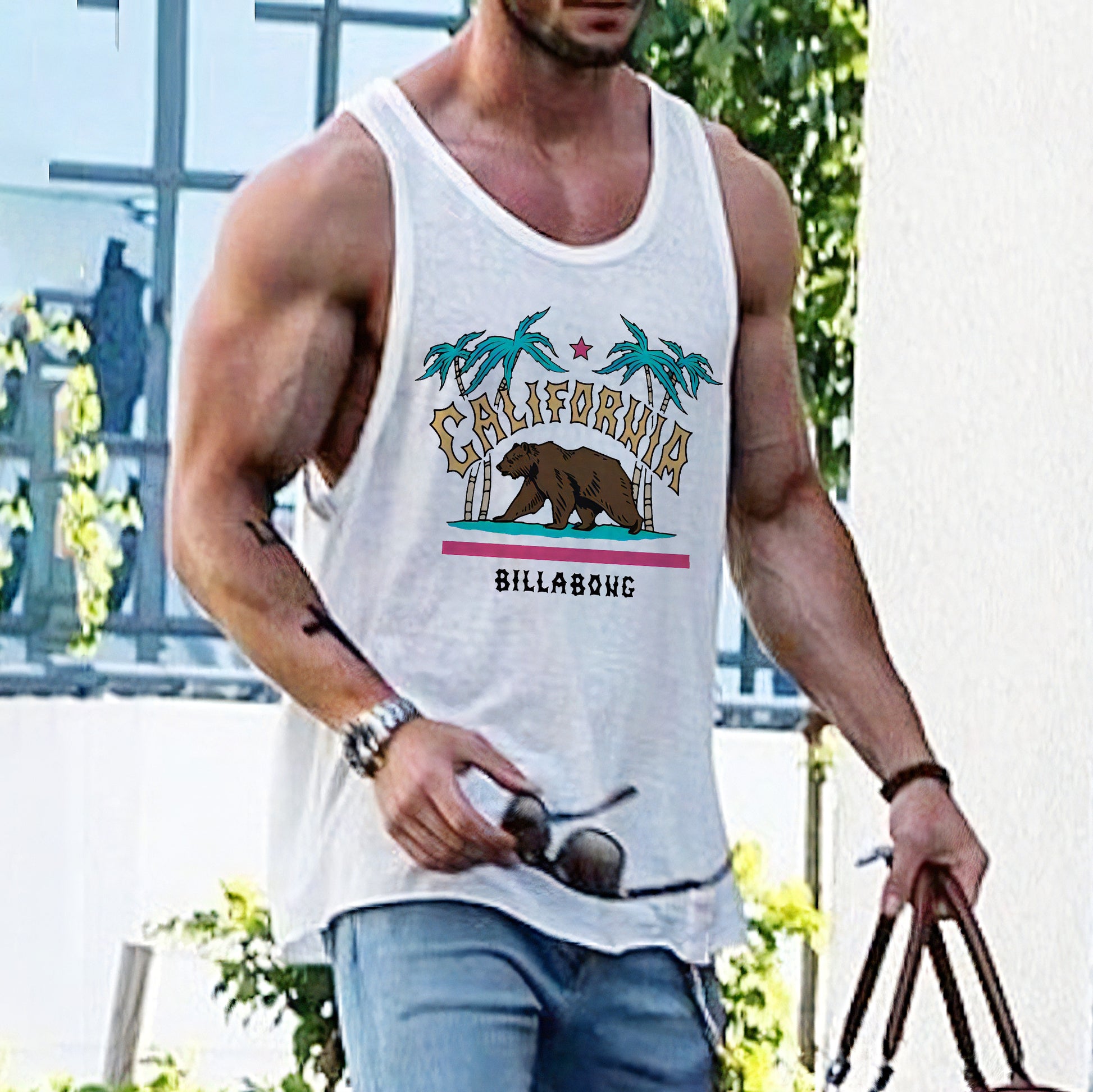 Crew Neck Casual Letter Graphic Print Tank Top-A