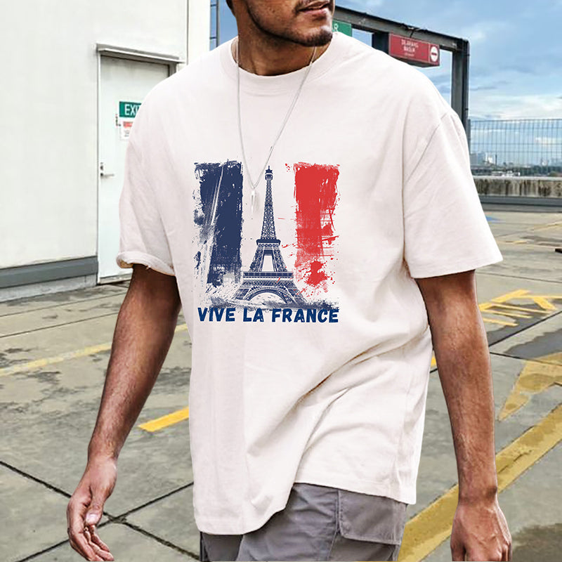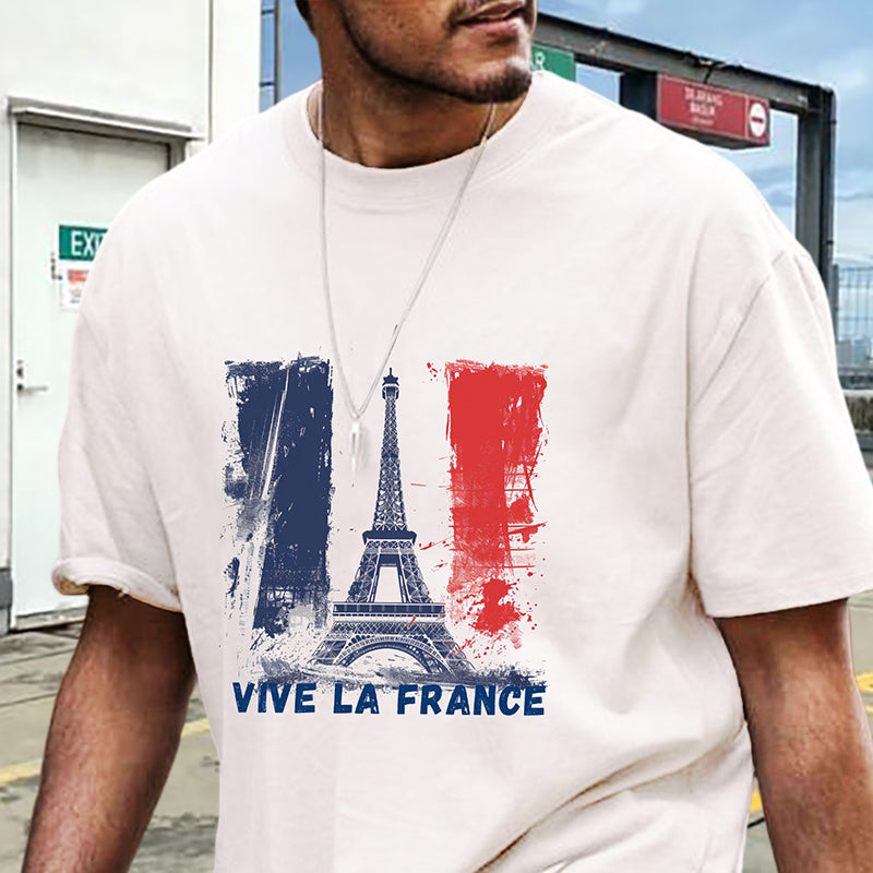 Eiffel Tower and France Flag Men's Casual T-shirt