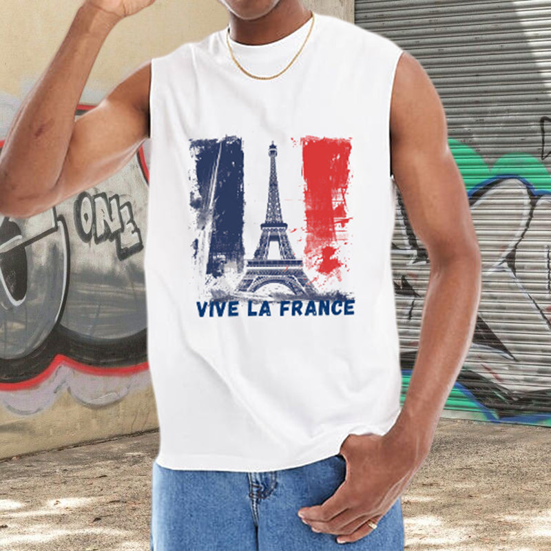 Eiffel Tower and France Flag Men's Casual Tank