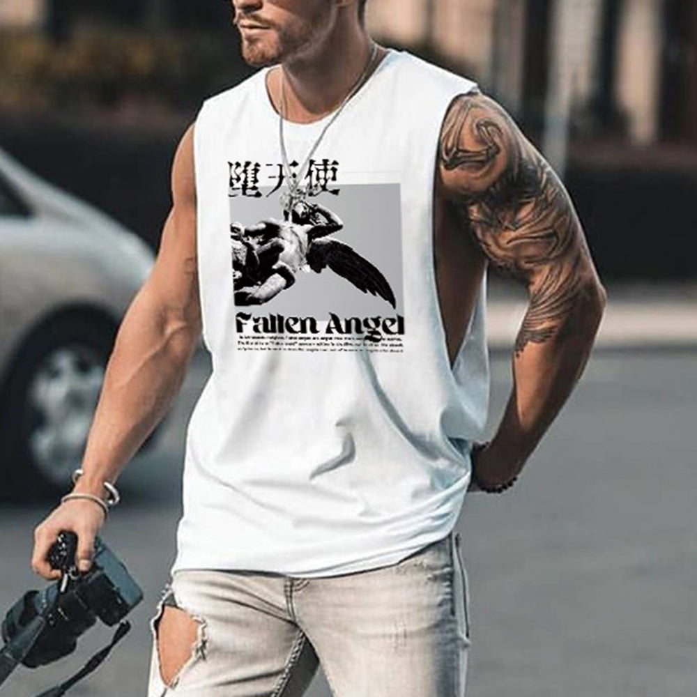 Fallen Angel Graphic Print Men's Loose Fit Tank Top