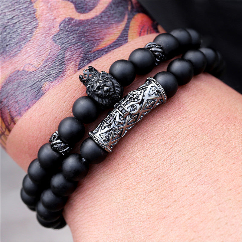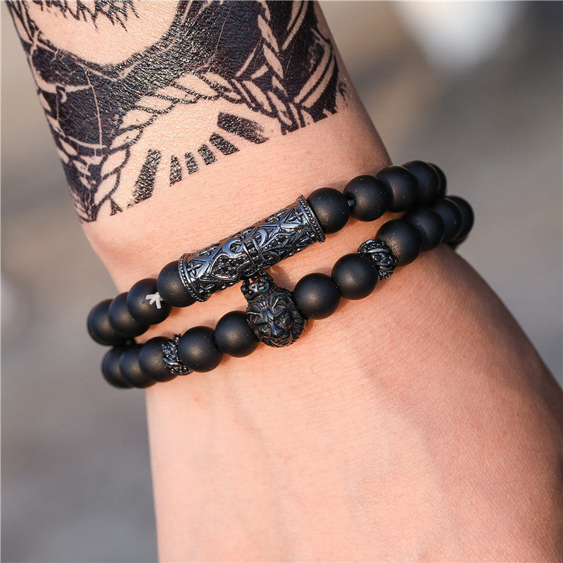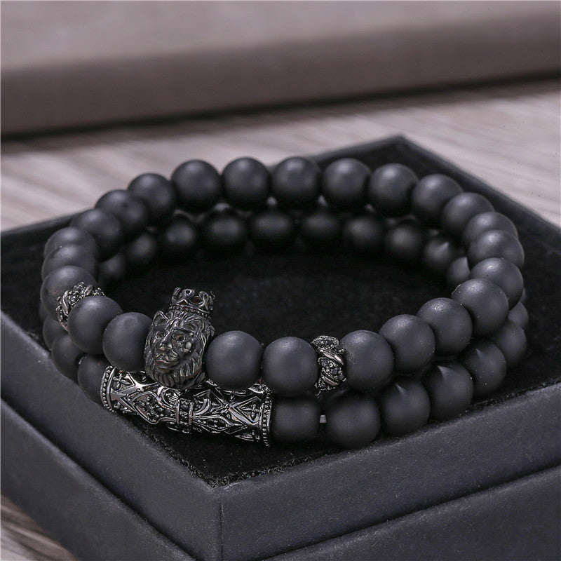 Fashion Men's Black Scrub Lion Head Stretch Bracelet