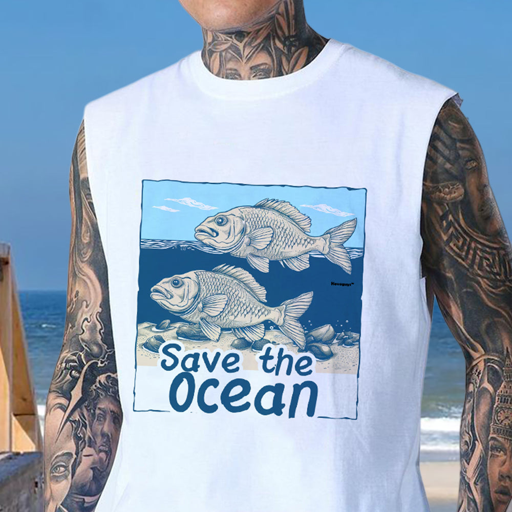 Fish Print Ocean Lovers Men's Cotton Tank Top