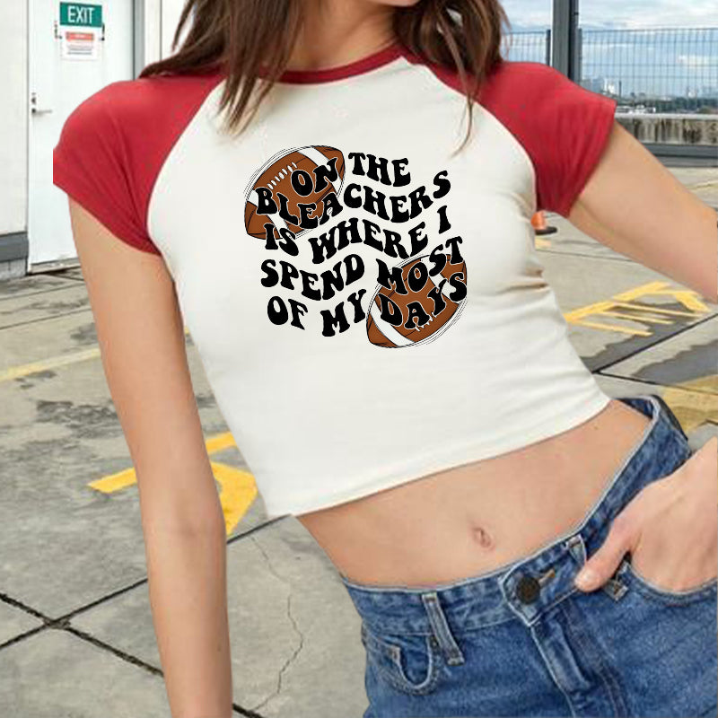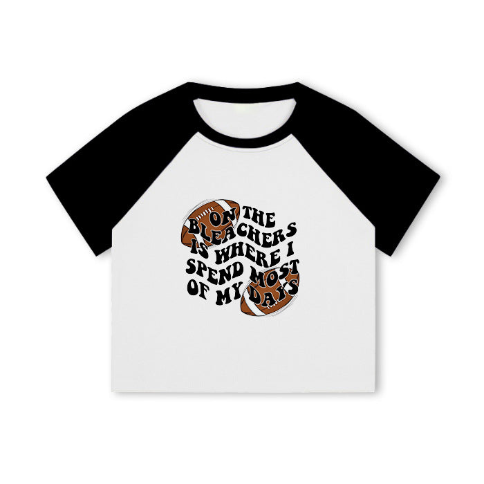 Football Lovers Print Ladies Color Block Crop Tee