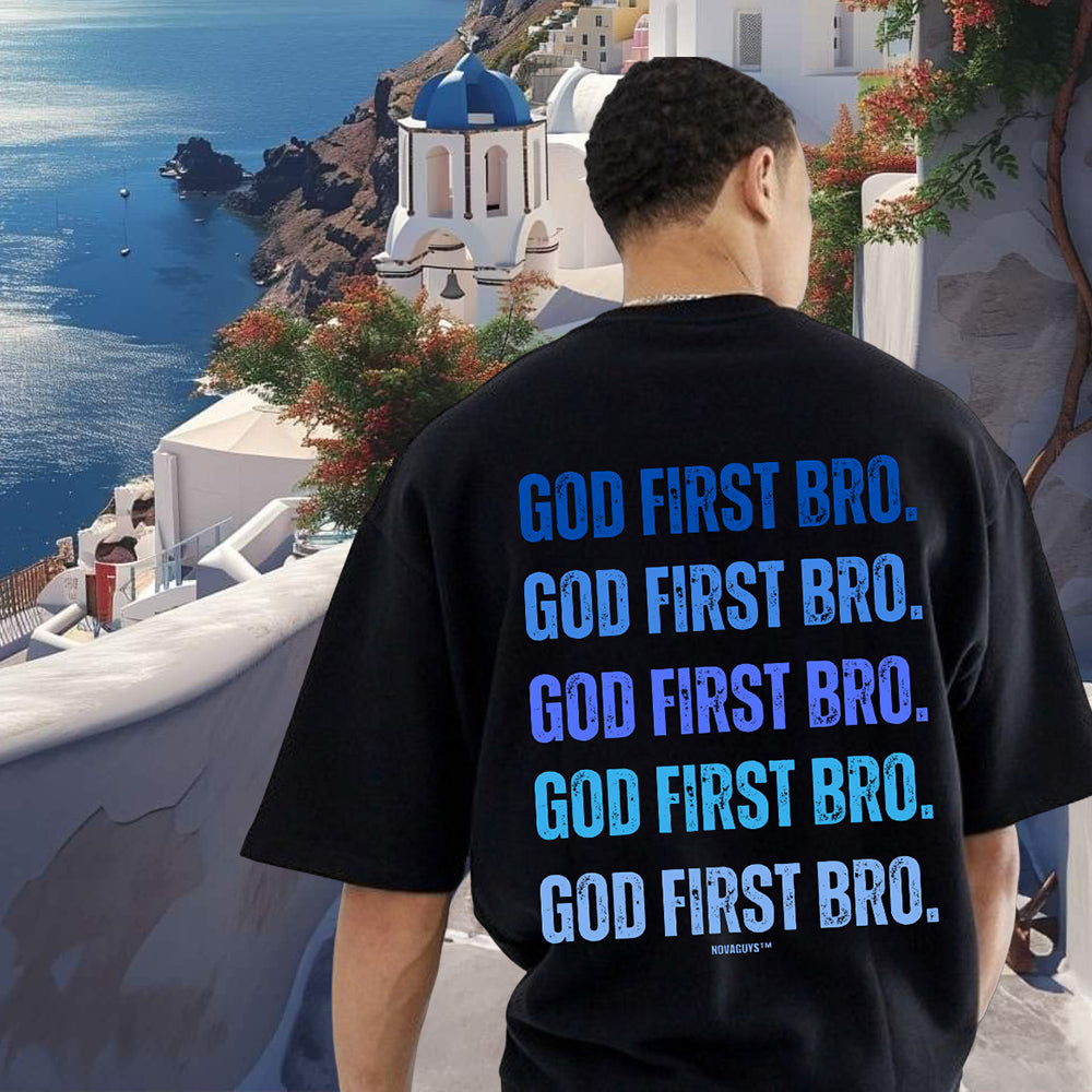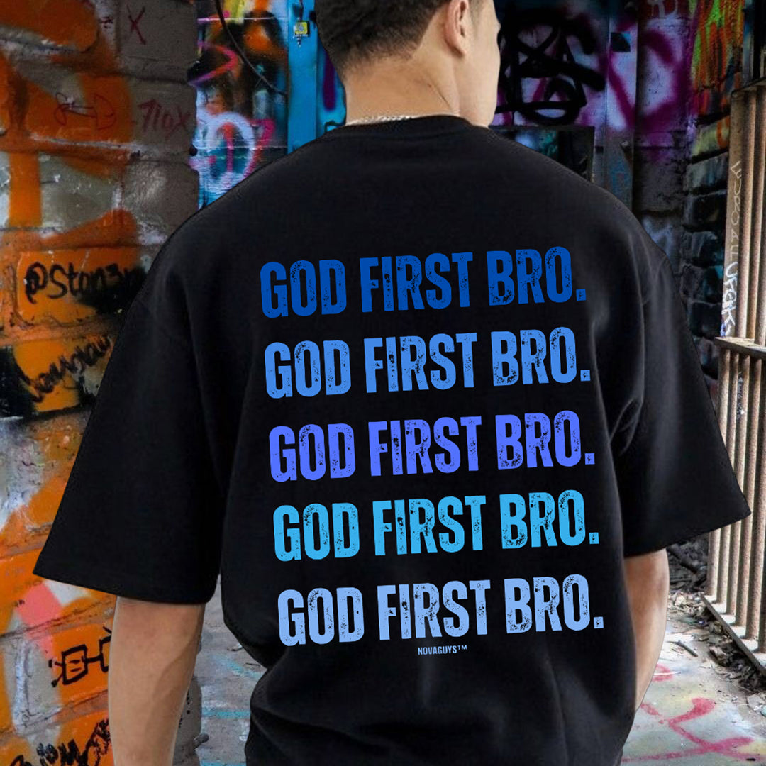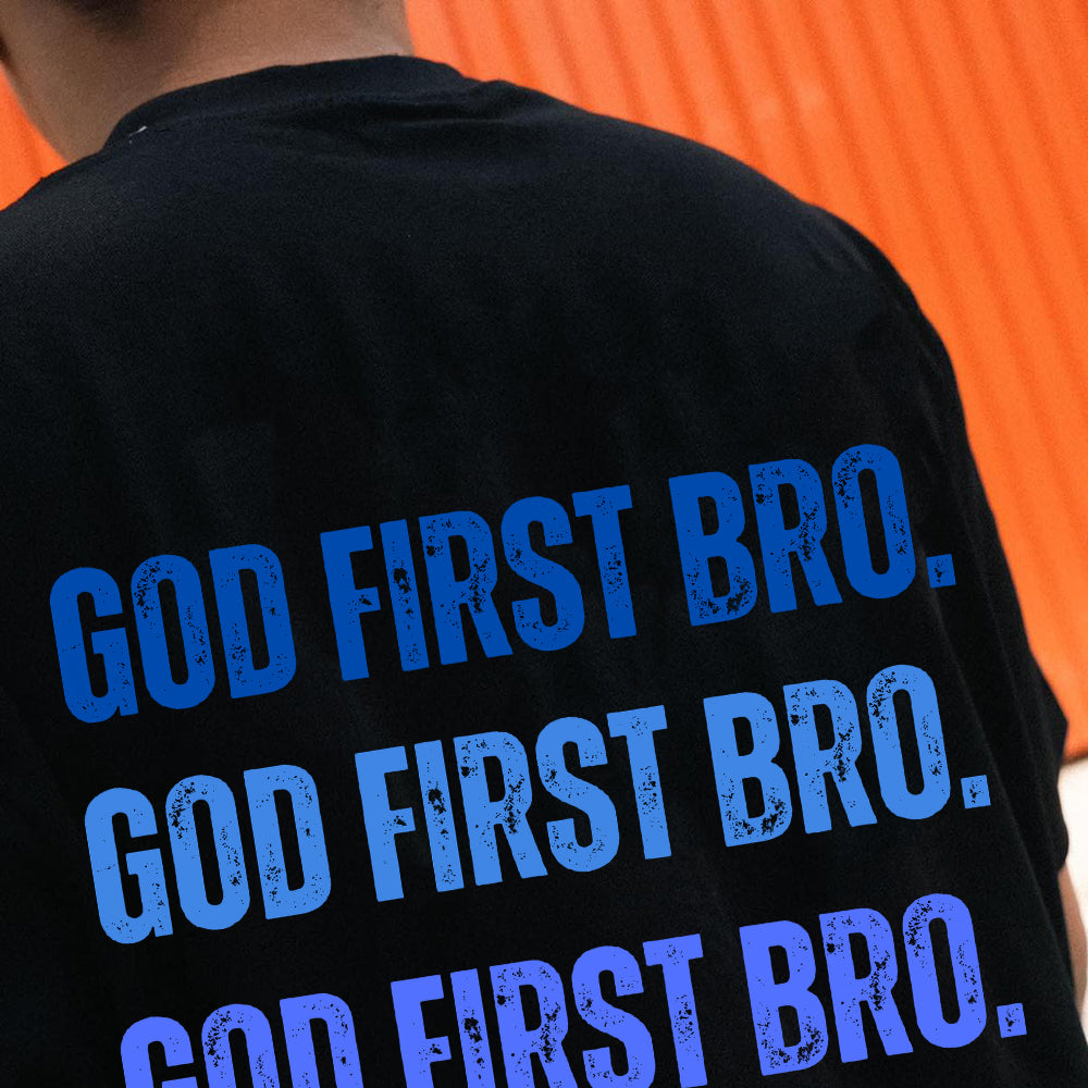 God First Bro. Men's Gradient Blue Cotton T-shirt Big & Tall