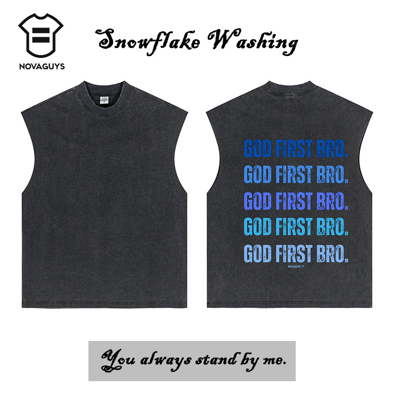 God First Bro. Men's Snowflake Washed Fabric Gradient Blue Letter Print Tank