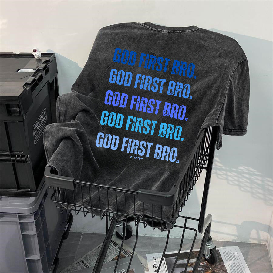 God First Bro. Men's Washed Black Cotton Tee