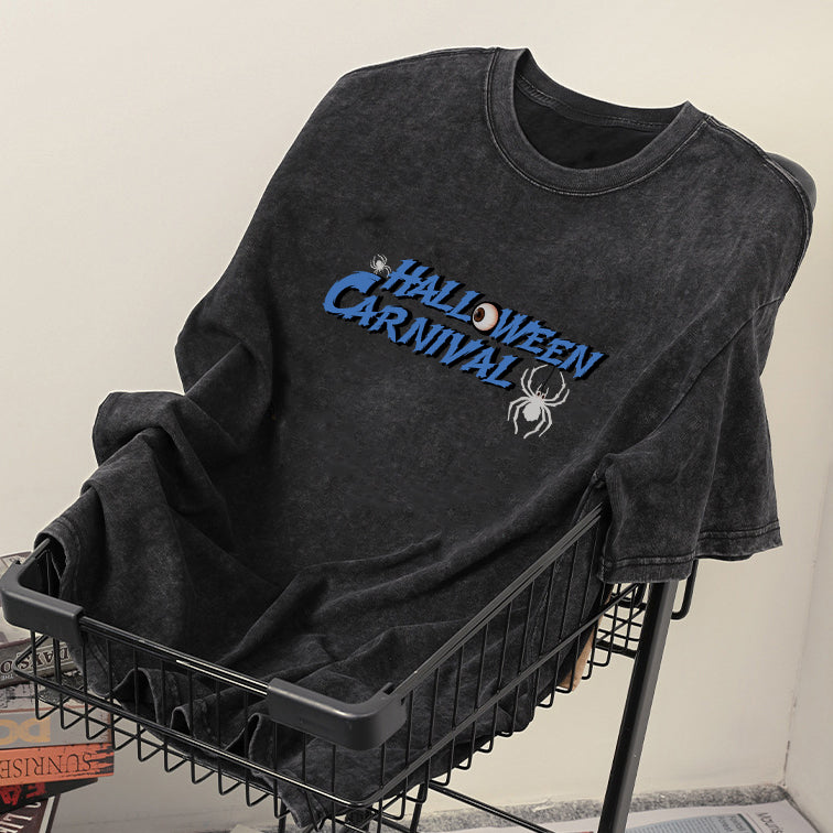 Halloween Spider Print Men's Washed Black Color Tee
