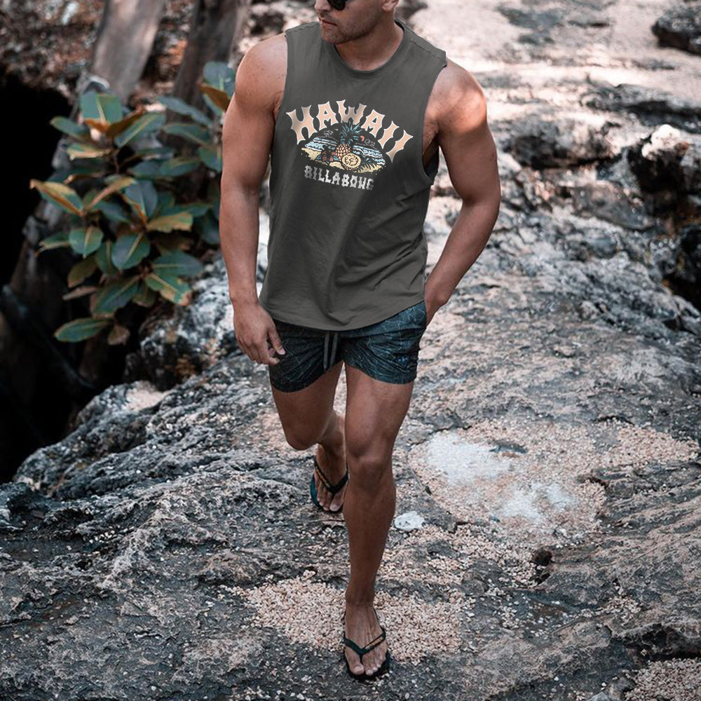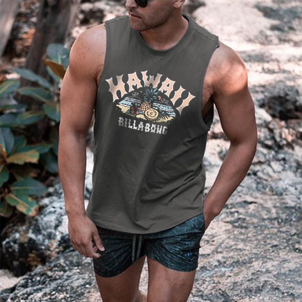 Hawaiian Beach Vacation Graphic Print Casual Men's Tank Top-C