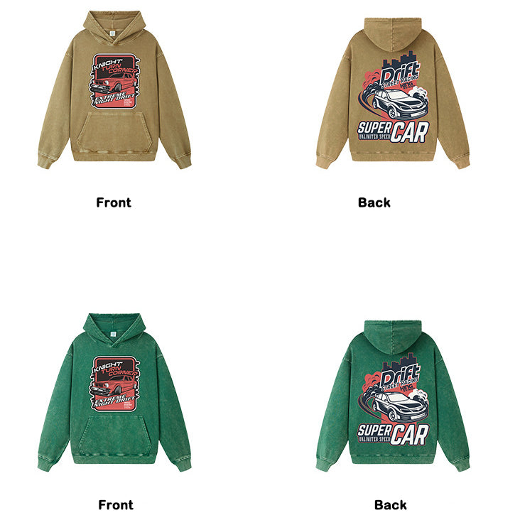 Introducing our Heavyweight Stonewashed Distressed Hoodie with Colorful Car Print! Made from 100% cotton fabric, this hoodie is designed for both comfort and style. With a fabric weight of 350G, it offers a substantial feel without compromising on breathability. The stonewashed treatment gives it a unique worn-in appearance, while the vibrant car print adds a pop of color and personality. Whether you're hitting the streets or lounging at home, this hoodie is the perfect blend of fashion and comfort. Upgrade your wardrobe today with this standout piece that will keep you looking cool and feeling cozy. Don't miss out on this must-have addition to your collection!
