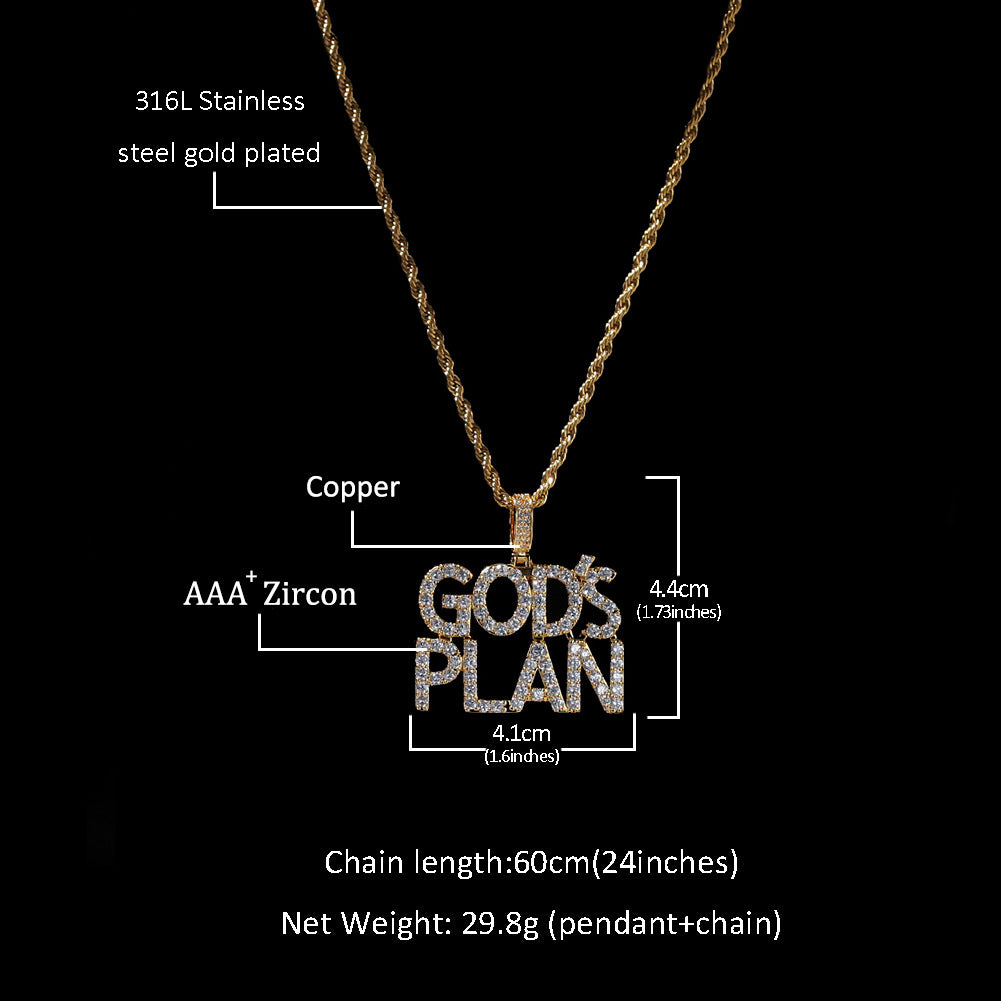 Hip Hop Zircon Alphabet Pendant GodsPlan Men's Necklace