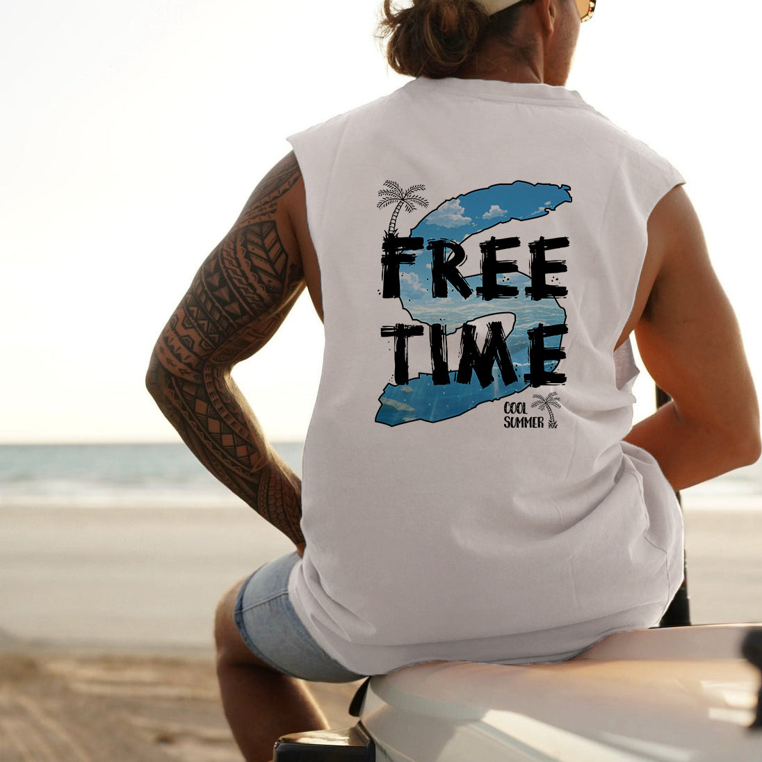 Introducing our premium men's tank top, designed for ultimate comfort and style. This versatile piece features a trendy "Cool Summer" lettering design on the front, adding a touch of modernity to your wardrobe. On the back, you'll find a unique "Free Time" motif, perfect for those who enjoy surfing or engaging in various outdoor activities. Crafted with high-quality materials, our men's tank top ensures breathability and durability, allowing you to stay cool and comfortable during hot summer days. The sleeveless design provides unrestricted movement, making it an ideal choice for any outdoor adventure. Whether you're hitting the waves or simply enjoying leisure time outdoors, this tank top is a must-have. Its eye-catching design and functional features make it a standout choice for men seeking both style and practicality. Shop now and elevate your summer wardrobe with our exceptional men's tank top, specially crafted for those who embrace a cool and active lifestyle.