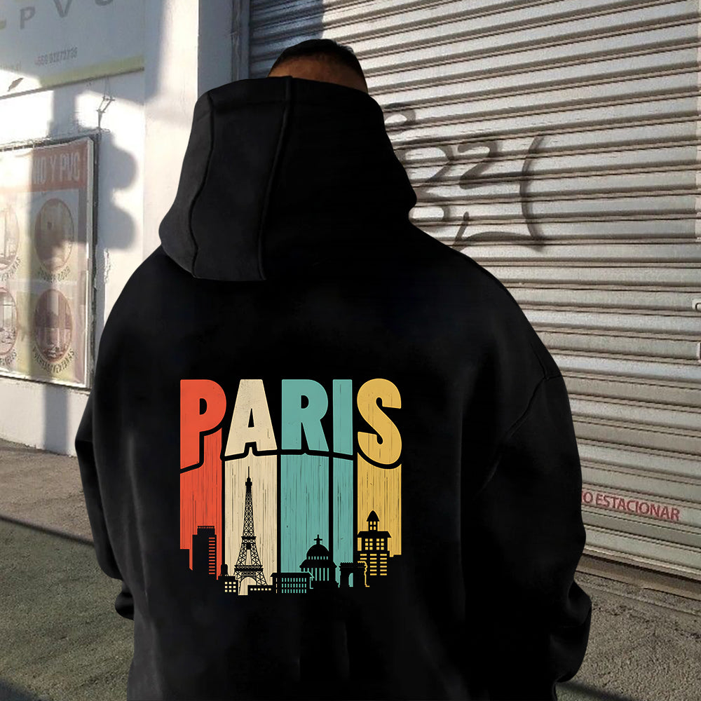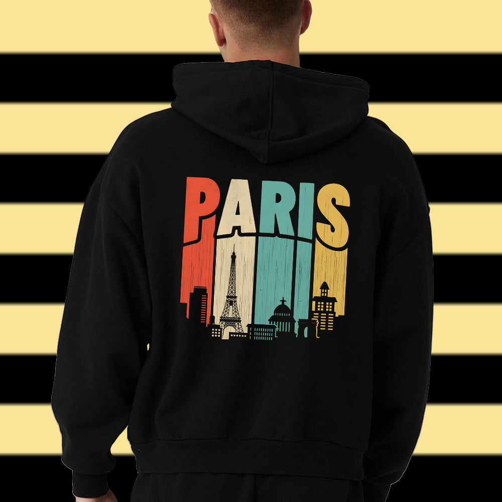 Silhouette of Paris Citycapes Men's Black Hoodie