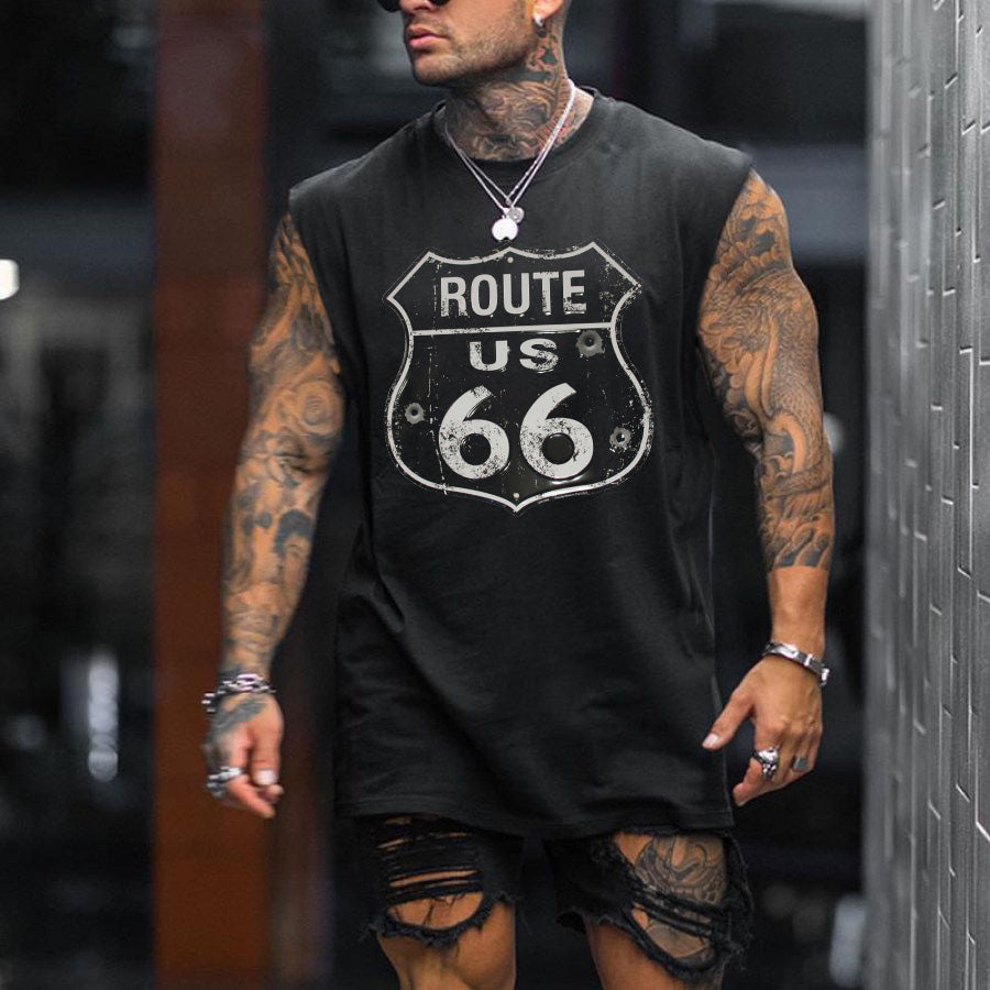 US Route 66 Historical Sign Men's Casual Tank Tops-B