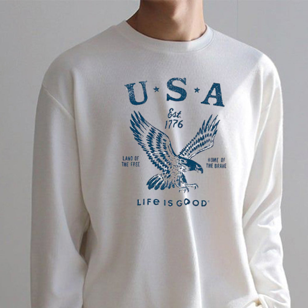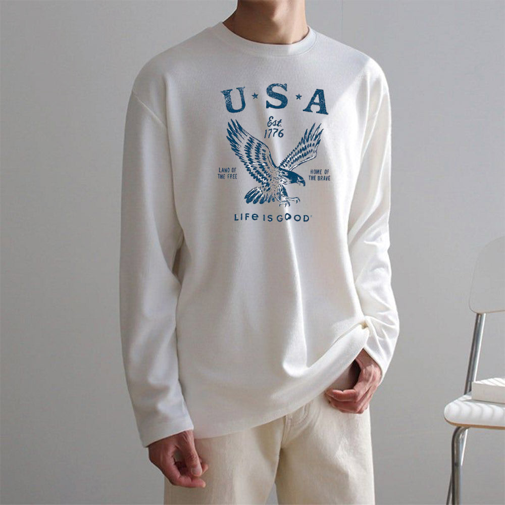 USA Eagle Print Men's Loose Long Sleeve T-Shirts-B