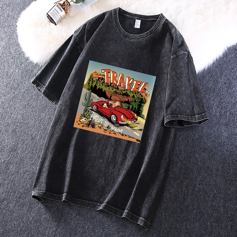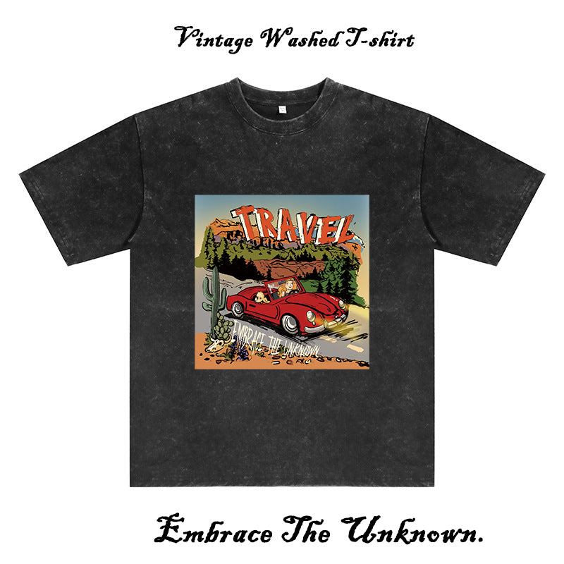 Vacation Graphic Print Men's Washed Black Color Tee