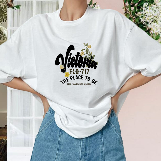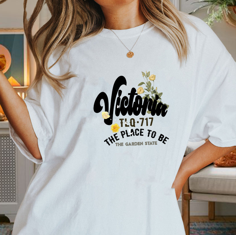 Pattern: Original Design. Floral & Letter Print. State of Victoria, Australia.