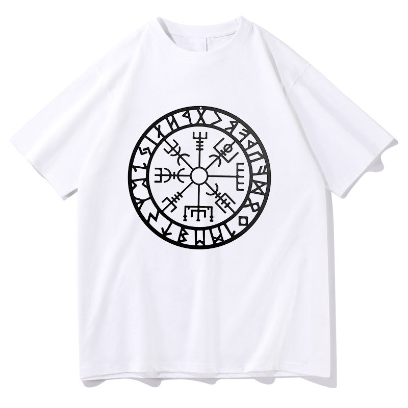 Pattern: A captivating print of authentic Viking runes. This unique tee pays homage to the ancient Norse tradition, showcasing the mystique of Viking symbols.