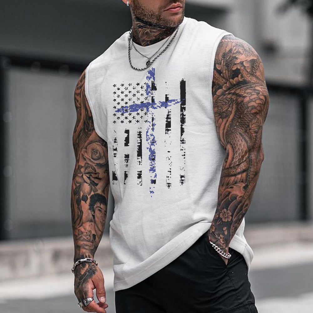 Vintage Distressed American Flag Print Men's Fashion Tank Top